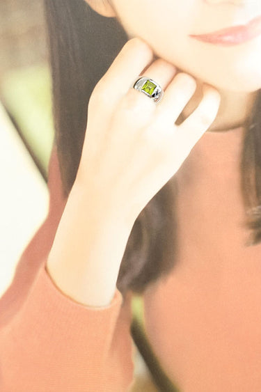 一見辛口な印象を感じますが、ペリドットがセットされていることで上品さをしっかりと演出してくれる一品です