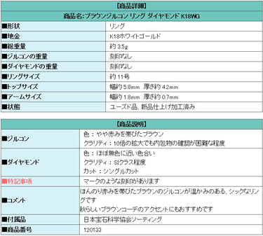 商品名:ブラウンジルコン リング ダイヤモンド K18WG