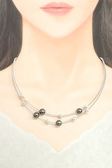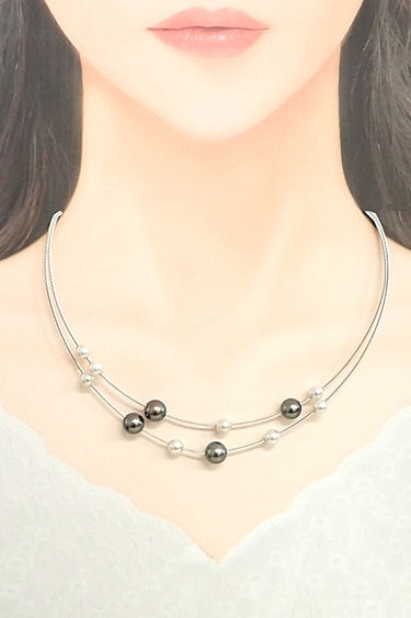 ミキモト 黒蝶真珠(南洋真珠) ジュエルズインモーション ネックレス アコヤ真珠 K18ホワイトゴールド MIKIMOTO ステーション ダブル【中古】【900378】