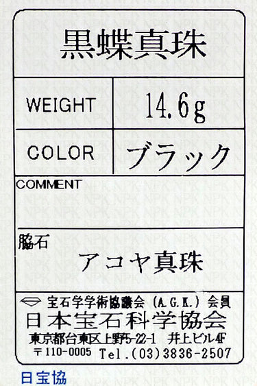 黒蝶真珠(南洋真珠) 色:わずかにレッドを帯びたブラックの色合い