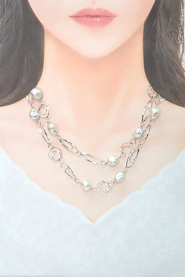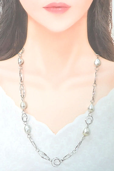 コメント タサキの、自然な形の白蝶パールに、軽やかなサークルモチーフのチェーンがモダンな雰囲気のステーションネックレスです。ロングネックレスなので、サッとお召いただくだけで一気に華やかな存在感をもたらします。2連にしてもお召しいただけます。