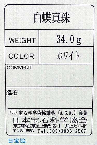 白蝶真珠(南洋真珠)の重量 刻印なし