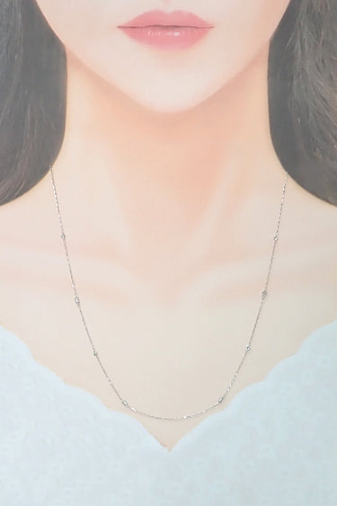 コメント 華奢なチェーンに等間隔であしらわれた2種類のカットのダイヤモンドがチラチラと煌めく、上品なステーションネックレスです。お気に入りのネックレスとの重ね付けにもおすすめなお品です。