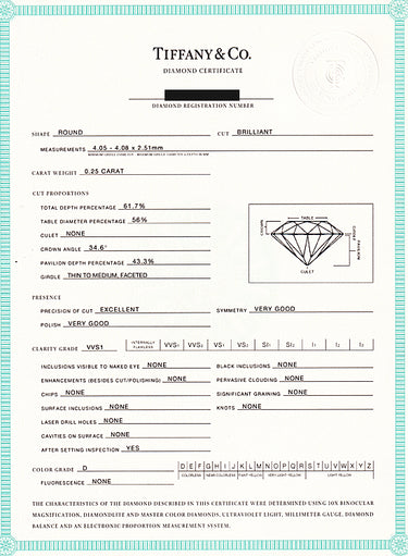 商品名 ティファニー ダイヤモンド ソリティア リング Pt950 TIFFANY&Co. グレード付き 鑑定書 ソリテール 一粒石 6本爪