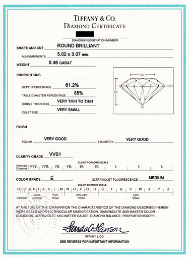 ティファニー ダイヤモンド ソリティア リング Pt950 TIFFANY&Co. グレード付き 鑑定書 一粒石 6本爪【中古】【901909】