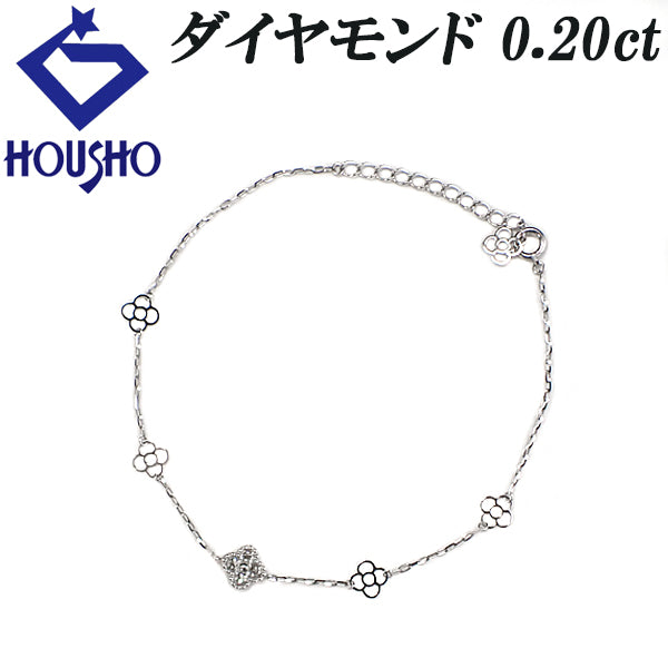 ダイヤモンド ブレスレット K18ホワイトゴールド 花 フラワー 植物 ボタニカル 透かし ミル打ち ミルグレイン【中古】【125338】