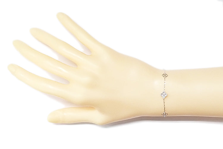 コメント 透かしのフラワーモチーフの中にひと際輝くダイヤモンドのモチーフがアクセントになった、可憐な雰囲気のブレスレットです。抜け感のあるデザインで、すっきりとした印象でお手元を引き締めてくれるお品です。