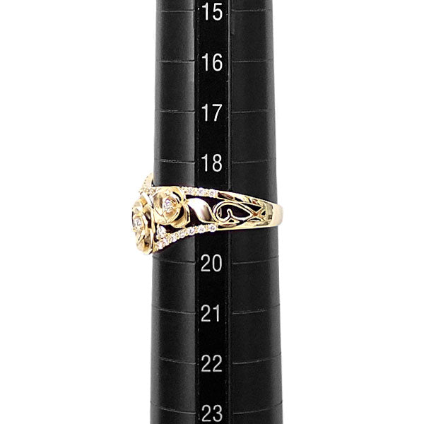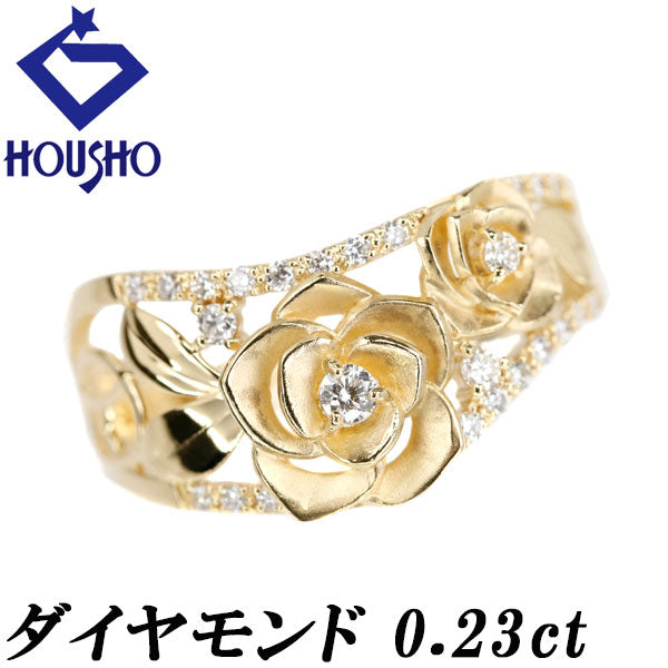 ダイヤモンド リング K18イエローゴールド 花 フラワー 植物 ボタニカル 透かし 梨地 マット ツヤ消し【中古】【901902】