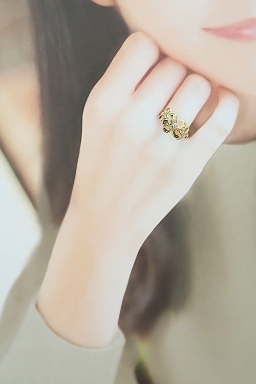 コメント アンジェラカミングスの、大小のフラワーモチーフが顔をのぞかせるファッショナブルで可愛らしいリングです。イエローゴールドの豊かな陰影と光沢に、ジュエリーらしいエレガントさを感じるお品です。