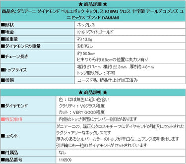 商品名:ダミアーニ ダイヤモンド ベルエポック ネックレス K18WG クロス 十字架 アールデコ メンズ ユニセックス ブランド DAMIANI