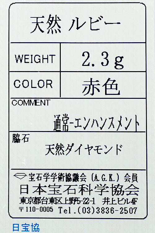 ルビー 色:濃く明るいピンキッシュレッドの色合い