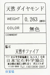 ダイヤモンドの裏やサファイアを留める両端の爪部分に隠れミッキーがいる、遊び心あふれた素敵なお品です