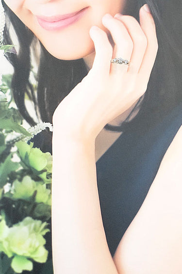 中央のダイヤモンドはメレダイヤモンドで縁どられており、より華やかな煌めきをお楽しみいただけます