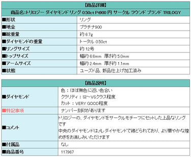 商品名:トリロジー ダイヤモンド リング 0.50ct Pt900 円 サークル ラウンド ブランド TRILOGY