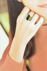 山崎裕見子の、深みのあるグリーンのトルマリンを使用した大ぶりで存在感のあるリングです