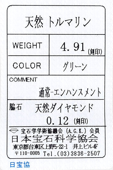 商品名:三越 グリーントルマリン リング 4.91ct ダイヤモンド K18YG ブランド MITSUKOSHI