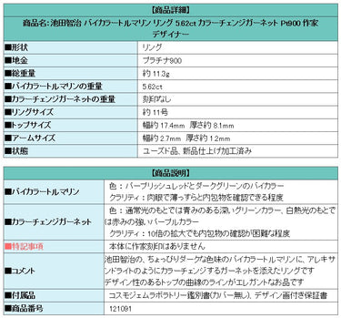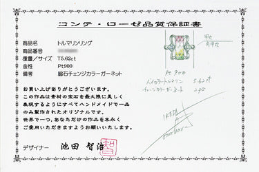 商品名:池田智治 バイカラートルマリン リング 5.62ct カラーチェンジガーネット Pt900 作家 デザイナー