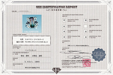コスモジェムラボラトリー鑑別書(カバー無し)、デザイン画付き保証書