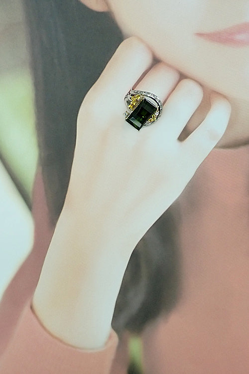コメント ボギー&レオの、落ち着いたグリーンカラーのトルマリンがシックにつやめく、存在感たっぷりのリングです。トップのなめらかな曲線のデザインとイエローサファイアが、トルマリンを引き立て、エレガンスな雰囲気を演出してくれます。