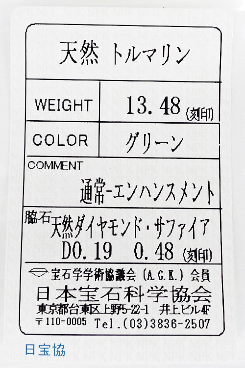 トルマリン 色:落ち着いたイエローグリーンの色合い