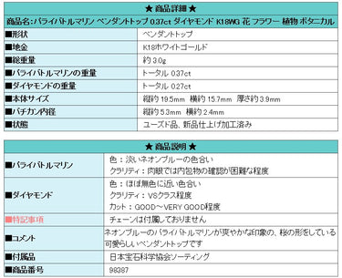 商品名:パライバトルマリン ペンダントトップ 0.37ct ダイヤモンド K18WG 花 フラワー 植物 ボタニカル