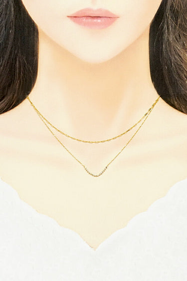 ゆるやかなカーブ上にセットされたダイヤモンドがきらめく、二連風の華奢なネックレスです