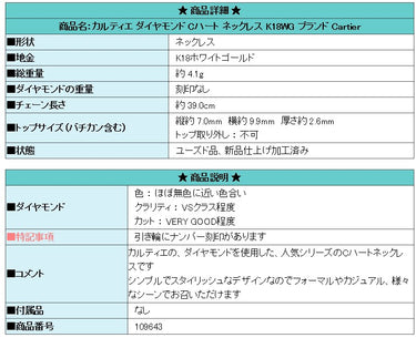 商品名:カルティエ ダイヤモンド Cハート ネックレス K18WG ブランド Cartier