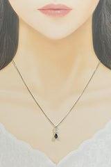 ドロップ型のアレキサンドライトにダイヤモンド3粒が連なった、シックで気品のあるネックレスです