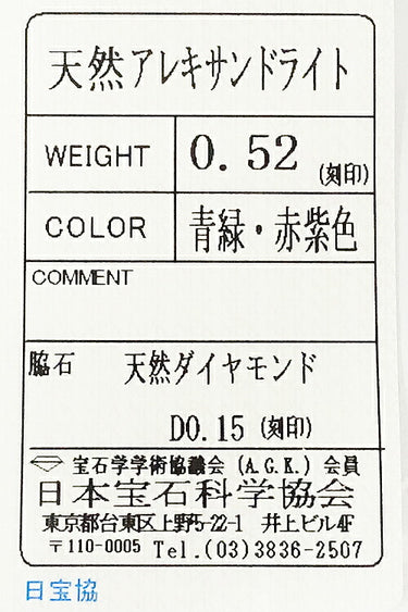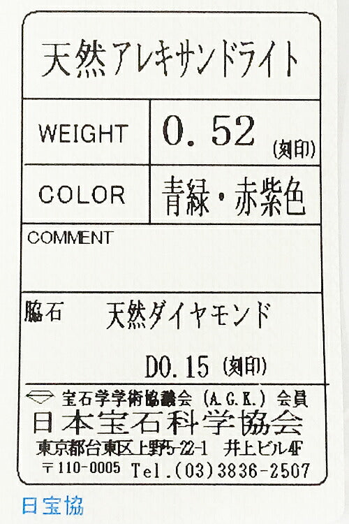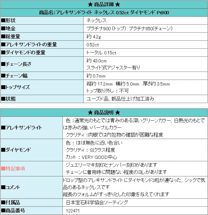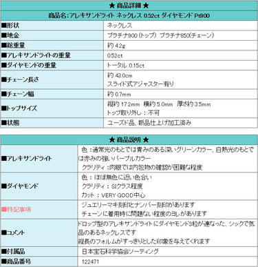 商品名:アレキサンドライト ネックレス 0.52ct ダイヤモンド Pt900