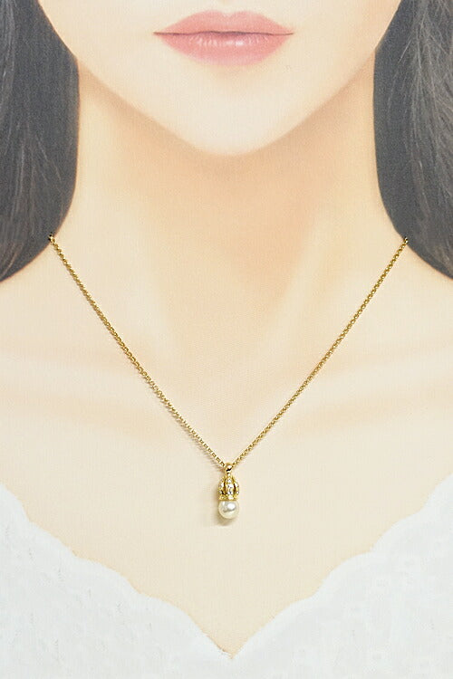 ミキモトの、つぼみのようなふっくらとしたモチーフに一粒のアコヤパールをつけた上品なネックレスです