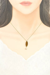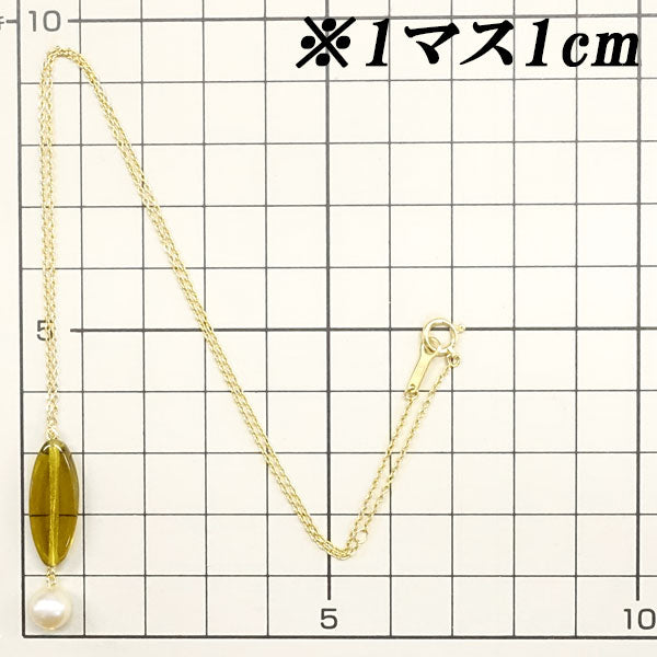 タサキの、アコヤパールのまろやかな輝きにブラウンがかったグリーンのガラスがシックな雰囲気のネックレスです