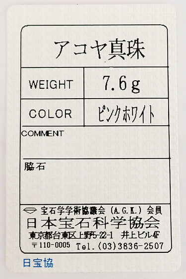 アコヤ真珠 色:ピンクを帯びたクリームホワイトの色合い