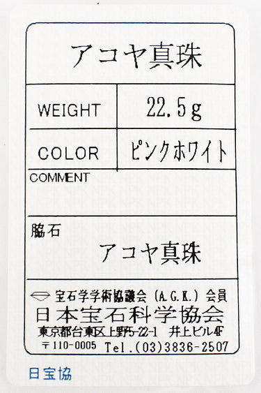 アコヤ真珠 色:ピンクを帯びたクリームホワイトの色合い