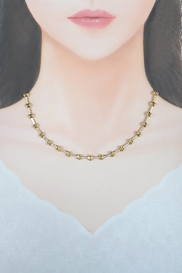 コメント ナニスの、ダイヤモンドがキラキラと煌めく、エレガントなネックレスです。細かなパーツが動いて肌になじみ、付け心地良くお召しいただけます。