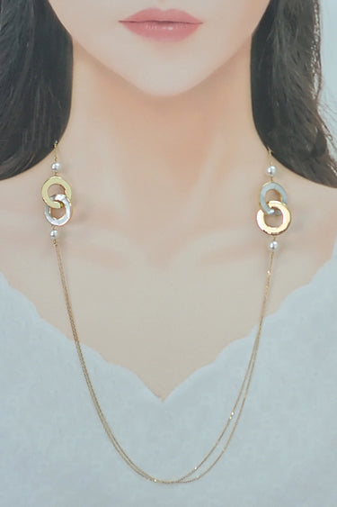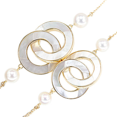 コメント タサキの、トップがダブルチェーンになっているエレガントなロングネックレスです。サイドにあるサークルモチーフにはアコヤパールとシェル、アクセントとしてダイヤモンドがあしらわれており、優美な存在感をもたらします。