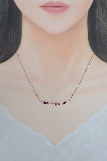 ピンクサファイア ネックレス ダイヤモンド マルチカラーストーン K18ピンクゴールド マルチカラーストーン カーブ ステーション【中古】【901983】
