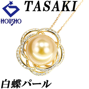 商品名 タサキ 田崎真珠 白蝶真珠(南洋真珠) ネックレス ダイヤモンド K18イエローゴールド TASAKI 花 フラワー 植物 ボタニカル ロング