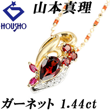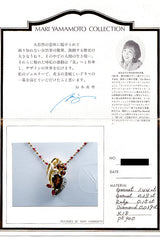 山本真理 ガーネット ネックレス ルビー ダイヤモンド K18イエローゴールド Pt900 MARI YAMAMOTO 作家 デザイナー 花 フラワー 植物 ボタニカル 梨地 マット ツヤ消し【中古】【902104】