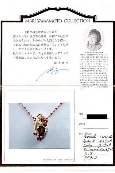 商品名 山本真理 ガーネット ネックレス ルビー ダイヤモンド K18イエローゴールド Pt900 MARI YAMAMOTO 作家 デザイナー 花 フラワー 植物 ボタニカル 梨地 マット ツヤ消し