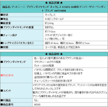 商品名:アントニーニ ブラウンダイヤモンド ネックレス K18PG 90周年アニバーサリーペンダント ブランド ANTONINI