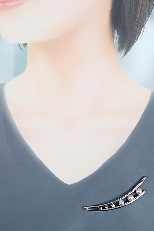 コメント ポーラの、二つのラインに挟まれたダイヤモンドとパールがグラデーションサイズになっている上品なブローチです。大ぶりのデザインですが、透かしのデザインのため重くなりすぎず、軽やかな印象で着用していただけます。