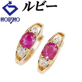 ルビー ピアス キュービックジルコニア K18イエローゴールド フープ 華奢【中古】【902499】