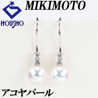 ミキモト アコヤ真珠 ピアス ダイヤモンド K18ホワイトゴールド MIKIMOTO フック 揺れる【中古】【903858】