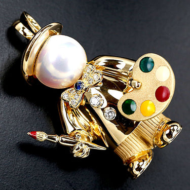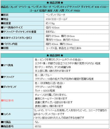 商品名:フレッド マベパール ペンダントブローチ ペンダントトップ サファイア ダイヤモンド K18YG 絵描き 画家 人形 人間 ブランド FRED