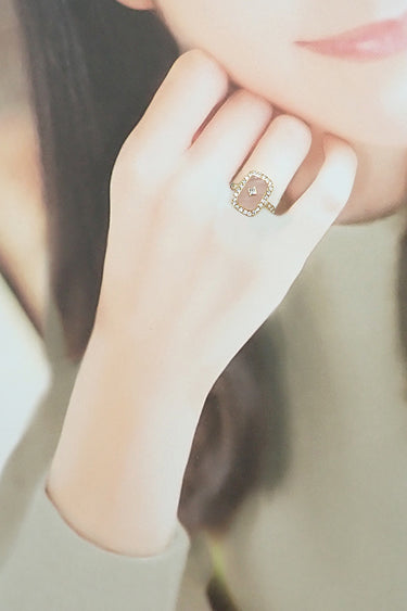 コメント ブシュロンの、マットな質感のローズクォーツがフェミニンな雰囲気のリングです。ダイヤモンドの煌めきで縁どられており、お手元を華やかに演出してくれます。
