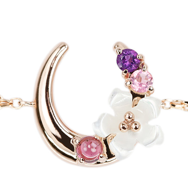 商品名 シェル ブレスレット ガーネット トルマリン アメジスト K10ピンクゴールド 花 フラワー 植物 ボタニカル