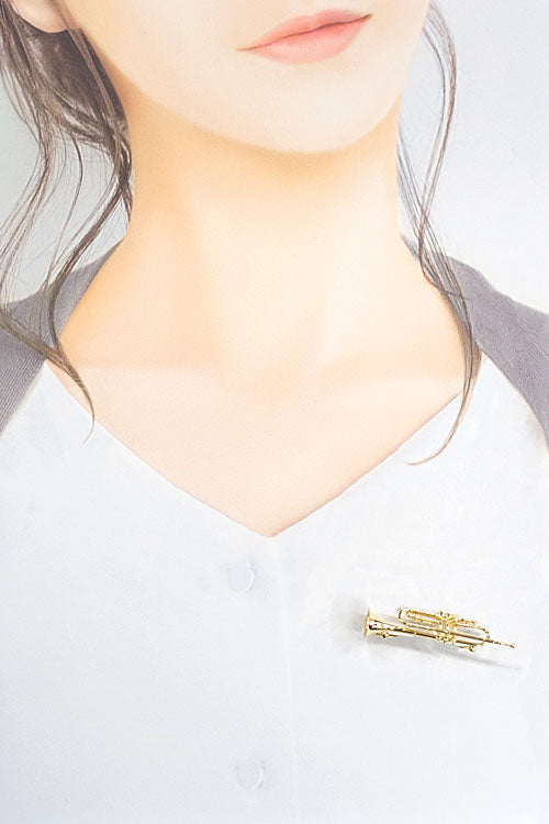 コメント 細部までしっかりと作り込まれたトランペットモチーフのブローチです。演奏会や発表会のコーディネートのワンポイントにもおすすめの一品です。
