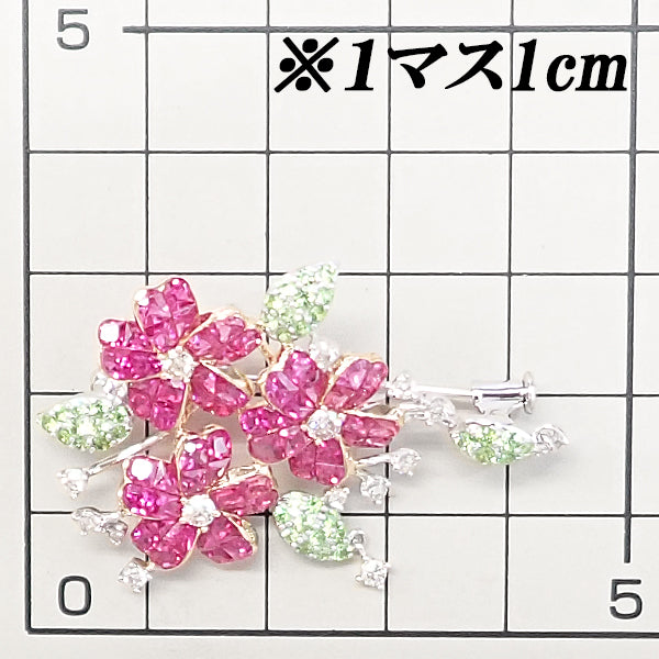 ピンクサファイア ブローチ デマントイドガーネット ダイヤモンド K18ホワイトゴールド K18ピンクゴールド 花 フラワー 植物 ボタニカル ミステリーセッティング【中古】【125507】