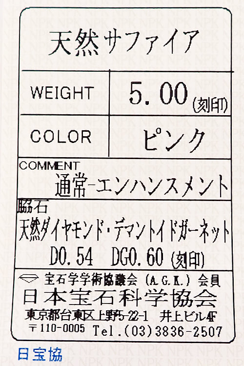 付属品 日本宝石科学協会ソーティング