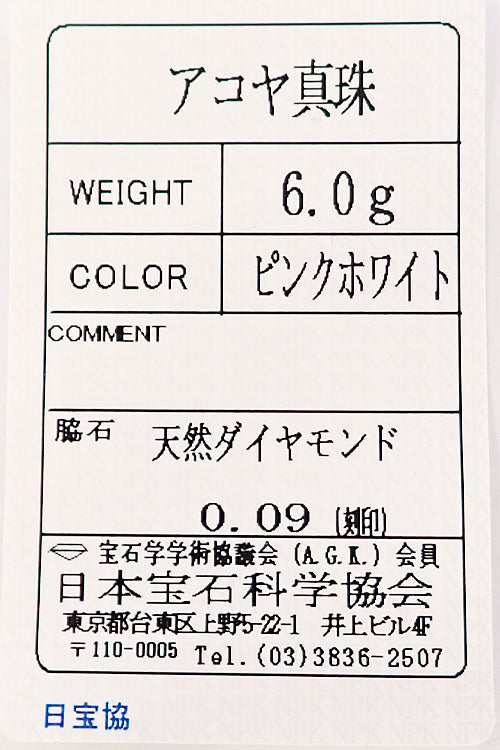 アコヤ真珠 色:ピンクを帯びたクリームホワイトの色合い